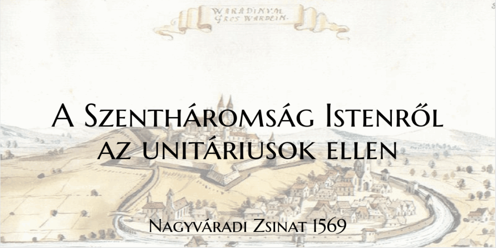 vagy az orthodox értelmet valló és védő magyarországi lelkészeknek, Dávid Ferenc és Blandrata György egységhivők ellen egy értelemmel elfogadott és ugyanazon váradi zsinaton 1569 okt. 10. megerősitett határozata.